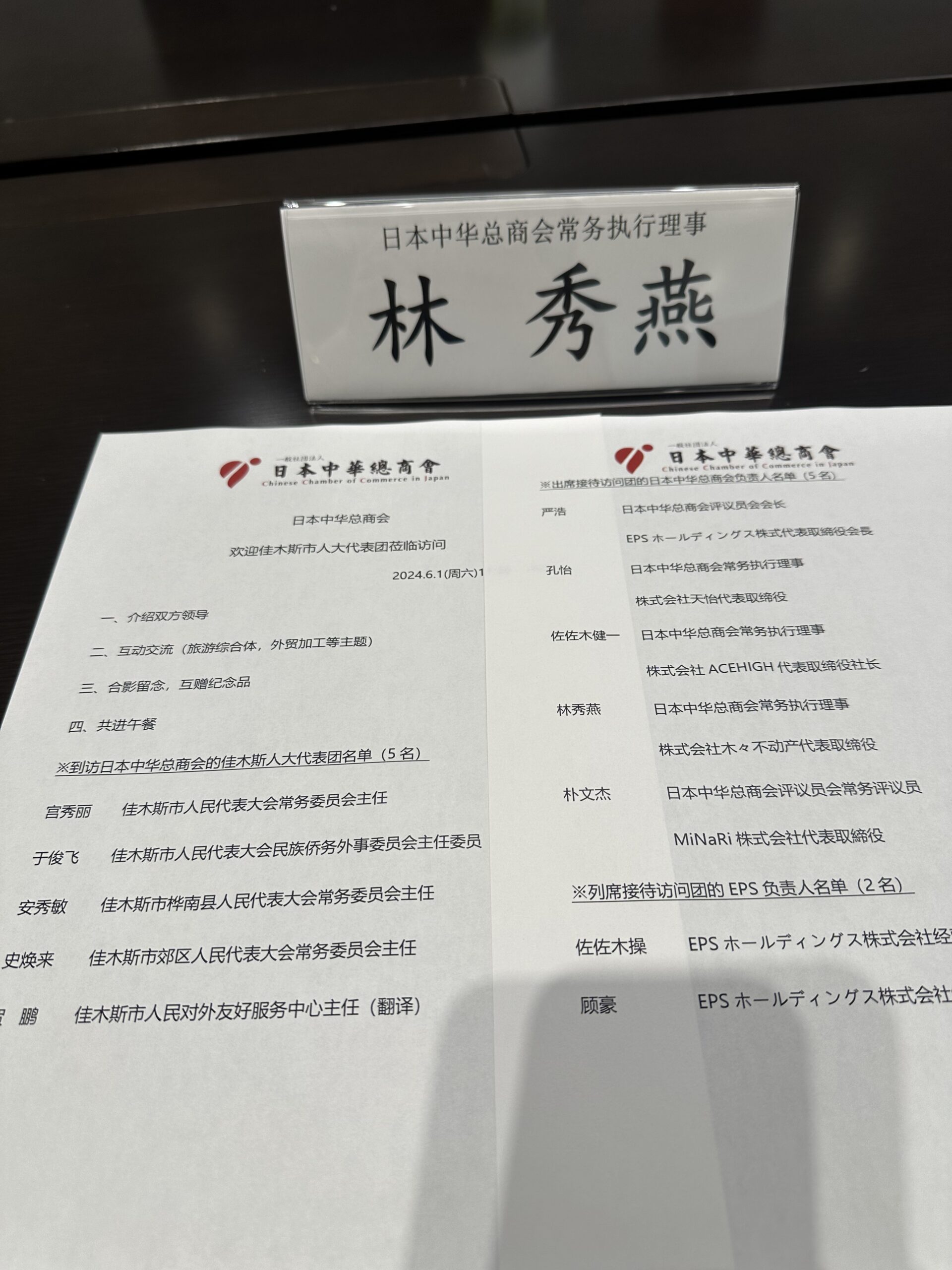 2024年6月1日、一般社団法人日本中華総商会は東京都でジャムス市人民代表大会訪日団と会談を行いました。日本中華総商会の常務執行理事であり、株式会社木々不動産の副社長である林秀燕氏もこの接待活動に出席しました。日本中華総商会は在日最大の華人華僑経済団体として、長年にわたり日中経済交流の架け橋を築くことに尽力しています。今回のジャムス市人民代表大会訪日団との会談を通じて、在日華僑や企業と中国との経済貿易における協力の機会を探求しました。